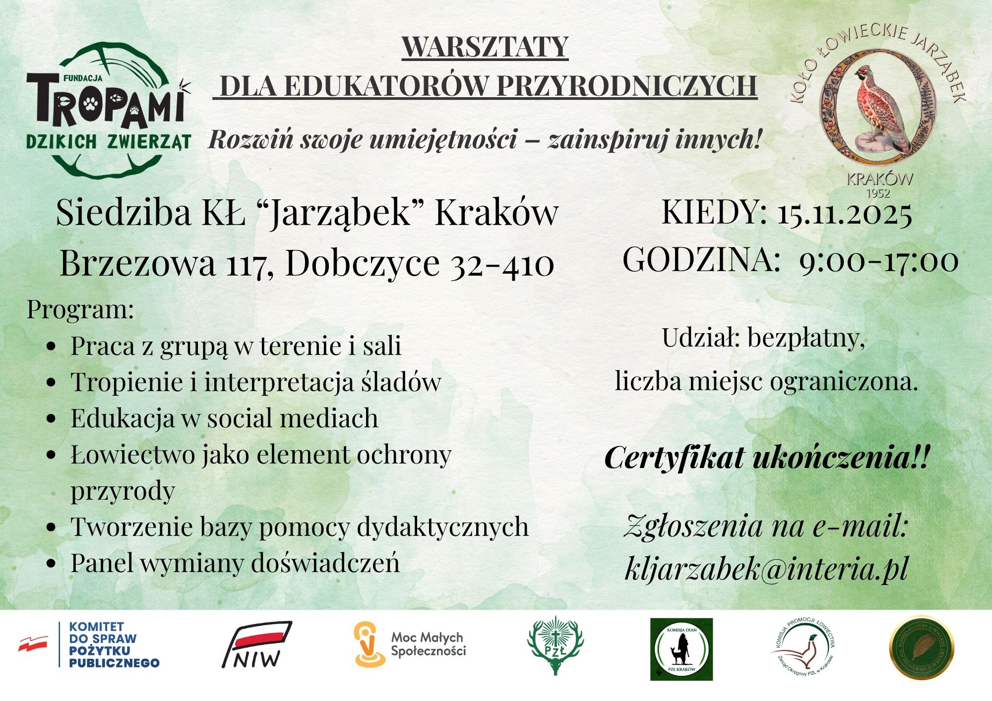 Wspólnie z Polskim Związkiem Łowieckim – ZO PZŁ Kraków oraz Fundacja Tropami Dzikich Zwierząt przygotowaliśmy program, który:
